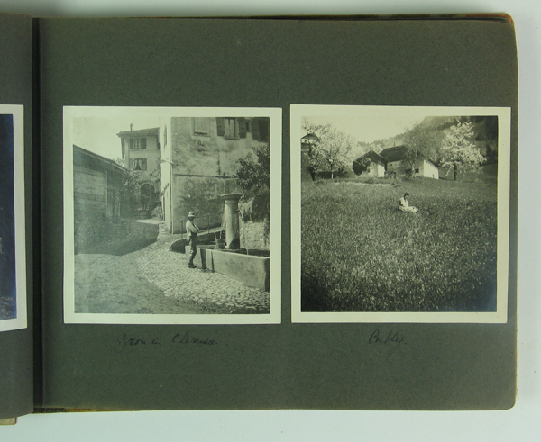Fotoalbum afkomstig van familie Roest van Limburg met foto's van een reis naar Zwitserland gemaakt van 28 maart tot 25 juni 1923. In fotoalbum diverse foto's en ansichtkaarten van bezienswaardigheiden in Zwitserland. Kaft van fotoalbum voorzien van abstracte figuren in de kleuren bruin, blauw, geel, groen en oranje.