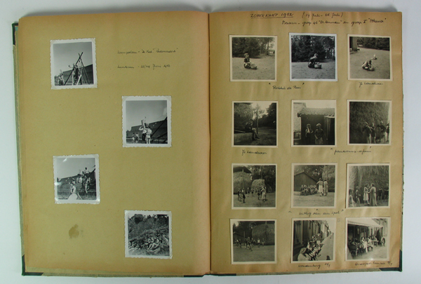 Fotoalbum getiteld 'Padvinderij'/ N.P.V. foto's van Emilie Helene Elisabeth (Elisabeth) Roest van Limburg (1928- )gemaakt tussen 1945 en 1952. Fotoalbum zijnde een plakboek met groen, gemarmerde kaft met groene verstevigingsband op de rug en de hoeken.