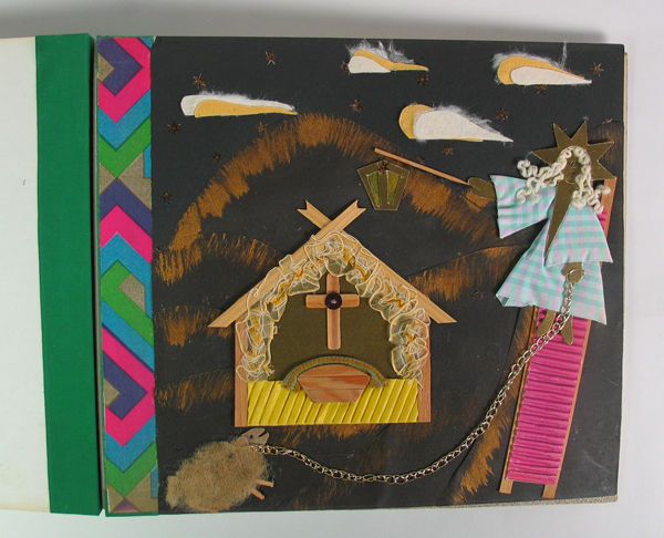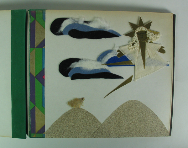 Presentatiealbum of werkstuk van Emilie Helene Elisabeth (Elisabeth) Roest van Limburg (1928- ) getiteld: 'Wolleke en Sterine' met daarin verschillende handwerkjes over een schaapje (Wolleke) en een ster (Sterine, engel). Elk werkstukje heeft een bijbehorend verhaaltje.