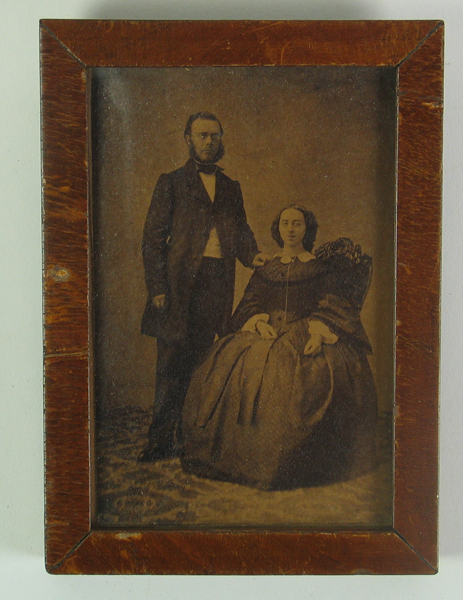 Foto, zwart/wit met portet van Alexander Nicolaas Wentholt en Johanna Cornelia van Voost mogelijk gemaakt op hun huwelijkdag in 1860. Foto in smalle, houten lijstje. Op achterkant een etiket met beschrijving van foto.