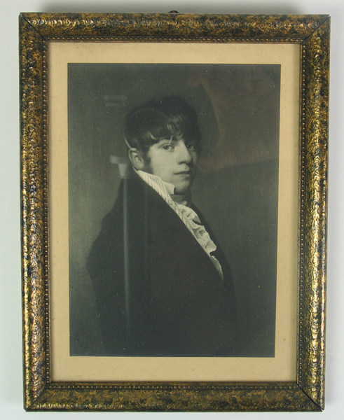 Foto, zwart/wit, van Mr. Pieter ten Behm Wentholt (1791-1864) op 20 jarige leeftijd. Foto in smalle gebronsde lijst voorzien van een parelrand. Foto naar schilderij door Willem Bartel van der Kooi 1768-1837.