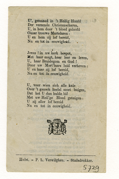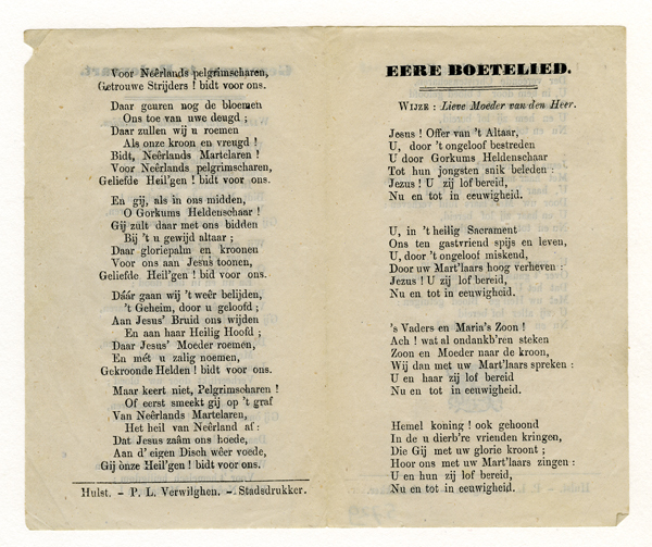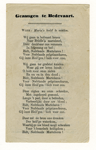 Klein document getiteld: Gezangen te Bedevaart met een lied op de wijze van 'Maria's beeld te midden en Eerste Boetelied op de wijze van: 'Lieve Moeder van den Heer'.