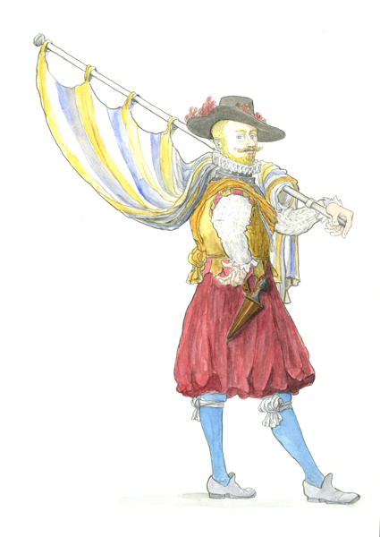 Aquarel met portret van Willem Bloys van Treslong (1529-1594). In zijn linkerhand draagt de man de geuzenvlag. Aquarel niet gesigneerd en gedateerd.