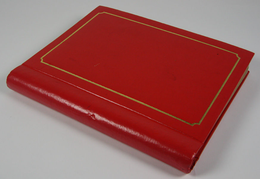 Fotoalbum van Meindert Derks. Album heeft rode kaft met goudkleurige rand. Bevat foto's en krantenknipsels van optredens.