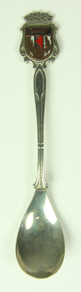 Theelepel met bovenaan een gekroond wapenschild met het wapen van Brielle en de tekst BRIELLE.