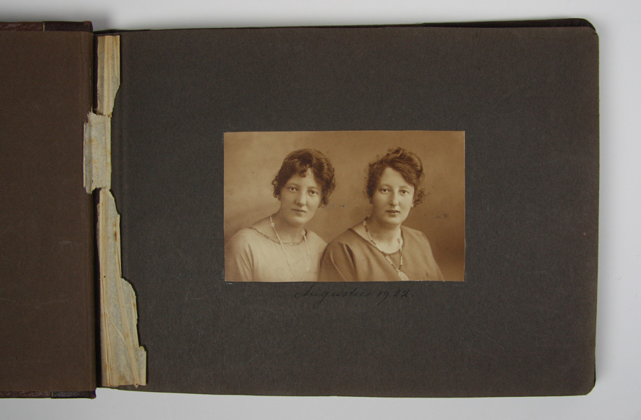 Bruine fotoalbum afkomstig van familie Moerman. In het fotoalbum zitten sepia en zwart/wit foto's met onderwerpen als: strand Rockanje, strand Scheveningen, Rotterdam, diverse portretten, foto's met hond, zwemfoto's, dansfoto's, vakantiefoto's en foto's van huishoudelijke taken. Rug en hoeken van album zijn bekleed met donkerbruin leer.