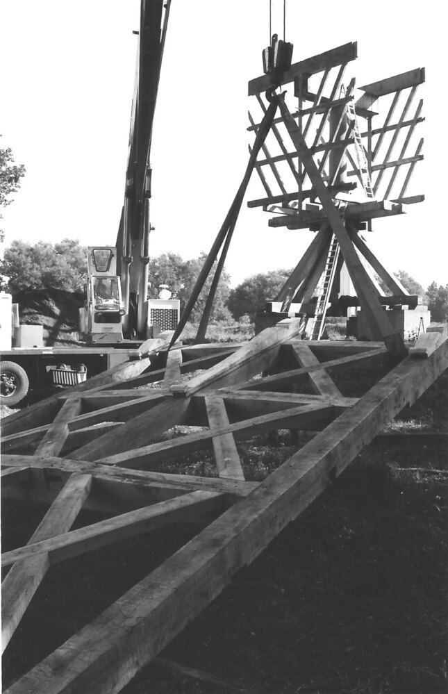 CD met daarop foto's die gemaakt zijn tijdens de bouw van de Brielse molen 't Vliegend Hert tussen 1981-1985. Foto's op twee na in zwart/wit.