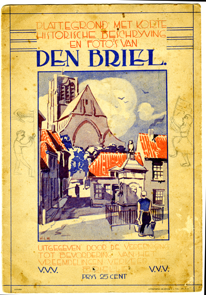 Voor- en achterkaft getiteld; 'Plattegrond met korte historische beschrijving en foto's van Den Briel.' Aan de binnenzijde enkele zwart/wit foto's van Brielle. Op de voorkant een afbeelding van het Wellerondom met op de achtergrond de Sint Catharijnekerk geschilderd door Martinus L. Middelhoek.