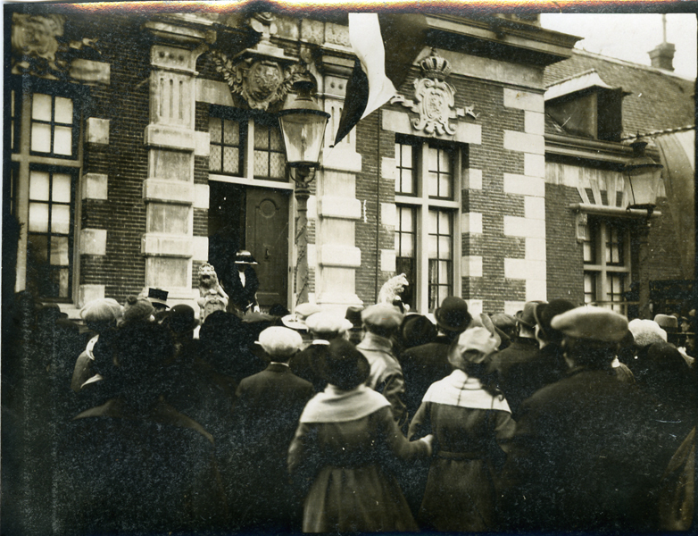 Foto, zwart/wit, van het Asylplein tijdens 1 april 1922.