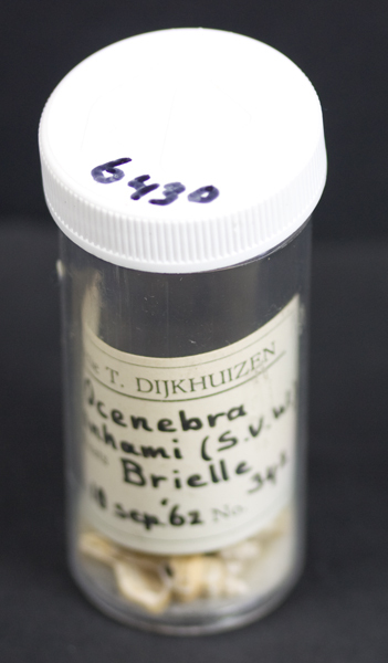Ocenebra O. canhami, in potje met los etiket, 5 stuks.