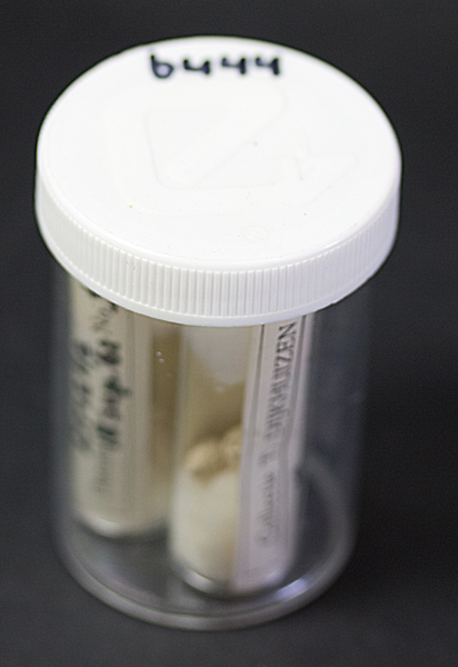 Potje met daarin 3 reageerbuisjes met schelpmateriaal voorzien van etiket; Nassarius N. dolfusi Harmer, Nassarius N. elegans (J. de C. Sow.), Nassarius N. consociatus (S.V.Wood), ca 15 stuks.