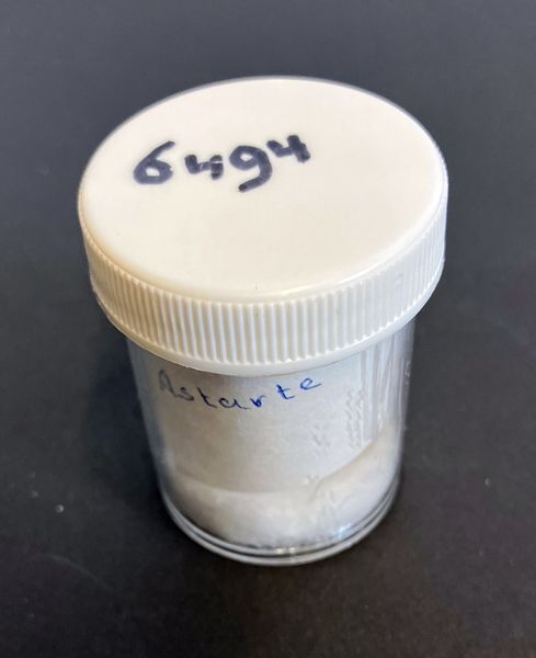 plastic potje met etiket "Astarte", bevattende 2 schelpen.