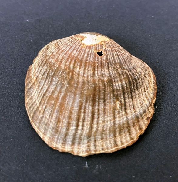 Plastic potje met etiket "Pecte nercolanianus cocc"bevattende 1 schelp.