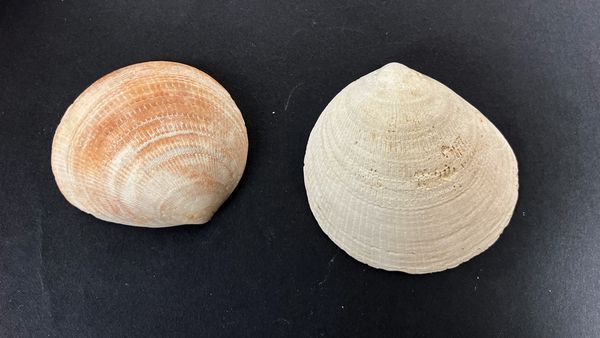 Plastic potje met etiket "Glycymeris variabilis (s.v.w.) Brielle 18 sep. '62 No 342" , bevattende 2 schelpen.