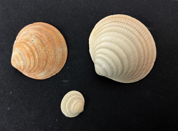 Plastic potje met etiket " Glycymeris variabilis variabilis (J. Sow.) Brielle 18 sep. '62 No 342" bevattende 49 schelpen.