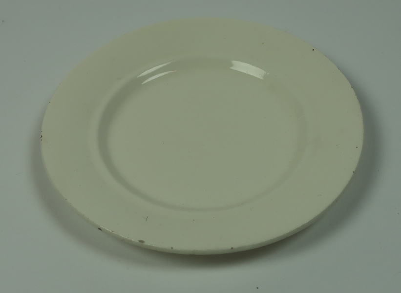 Plat bordje, crème, behorende bij kinderservies. Aan onderkant gemerkt. Bord hoort bij een kinderservies.