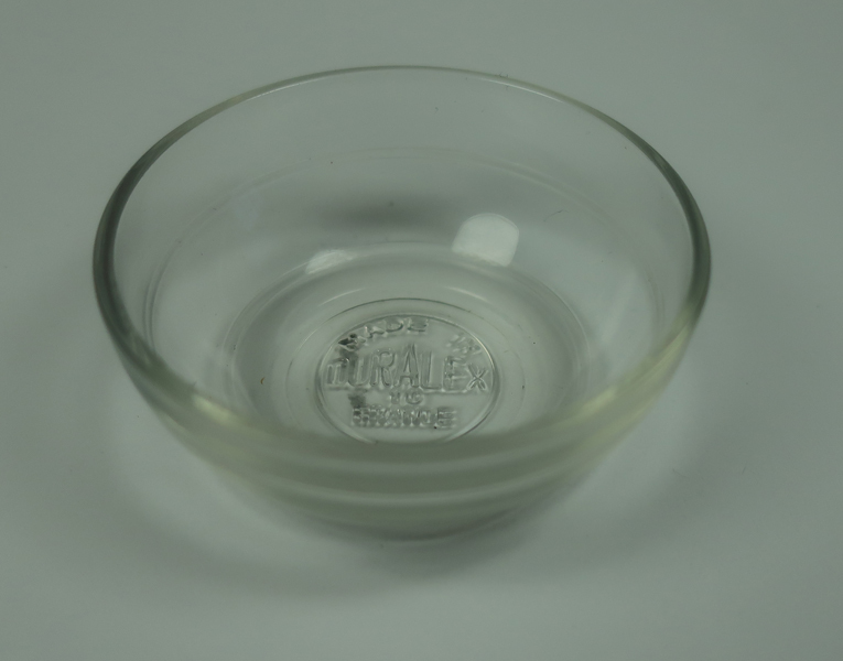 Klein glazen schaaltje Duralex. Onderaan gemerkt. Schaaltje is gebruikt als speelgoed.