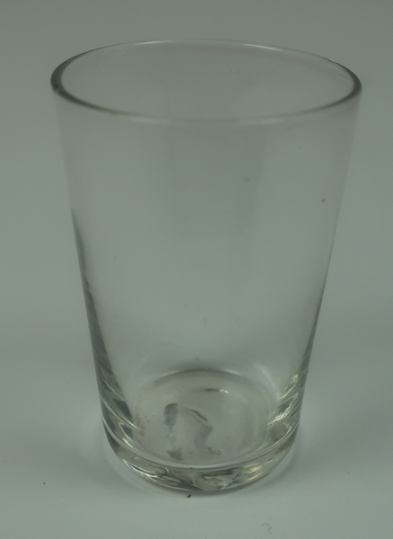Kleine, conische, drinkglas behorende bij kinderspeelgoed, drie stuks.