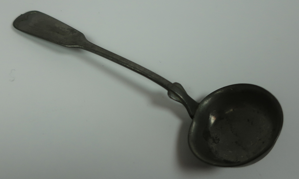 Lepel zijnde een soeplepel behorende bij speelgoed. Achterkant voorzien van een merk