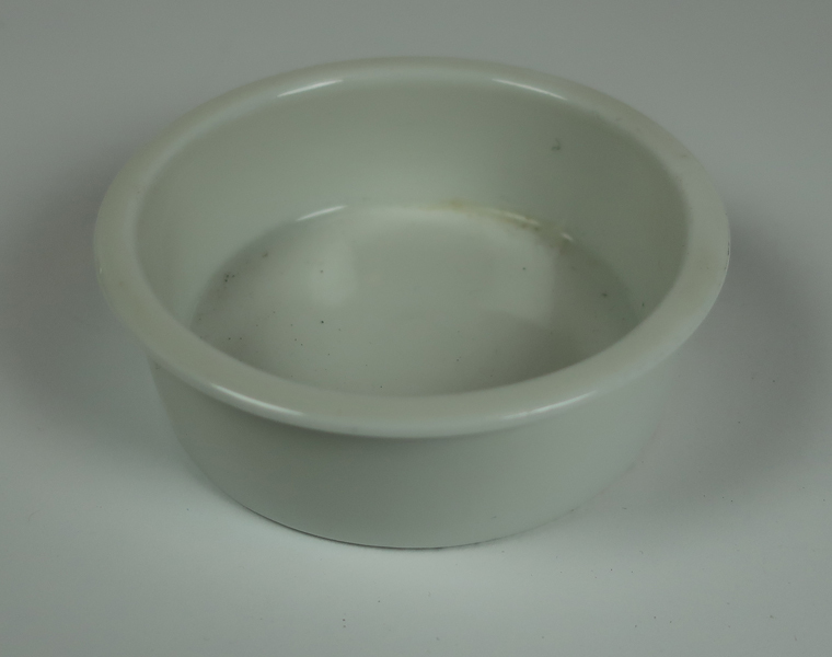 Klein wit schaaltje gebruikt als speeldgoed en behorende bij een kinderfornuis en servies.