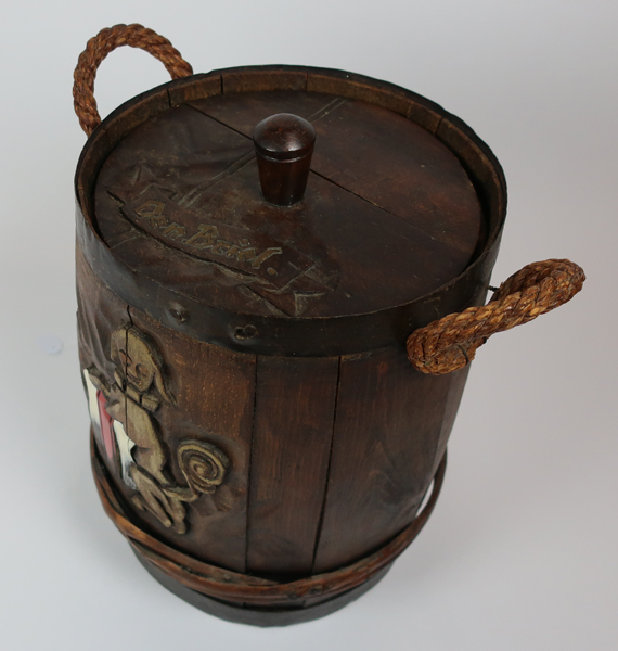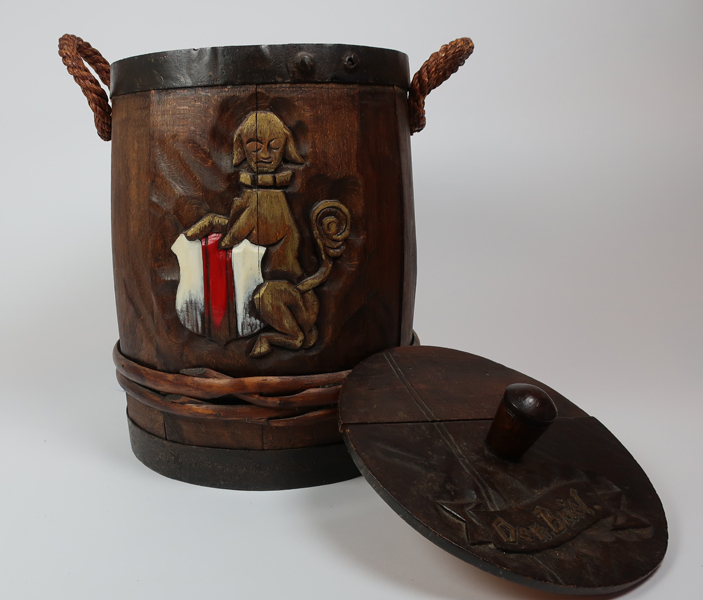 Ton, zijnde een haring ton met op de voorkant in hout uitgesneden wapen van Brielle met schildhouder. Ton is voorzien van losse deksel met knop en de ton heeft aan de bovenkant twee handvaten. Op de onderkant van de deksel staan diverse geschreven handtekeningen.