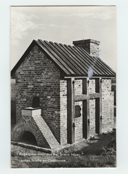 Foto, zwart/wit, met daarop de Kogeloven gelegen nabij de Stenen Baak te Oostvoorne.