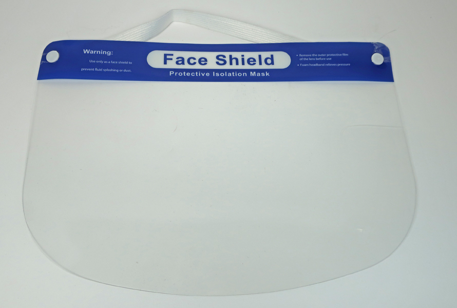 Shield voorzien van een witte elastieken band aan achterzijde en blauwe bies langs de bovenkant voorzien van blauw en witte opchrit. De leden van de stembureau gebruikten deze shield tijdens de Tweede Kamer Verkiezingen op 17 maart 2021. De verkiezingen stonden in het teken van de Corona crisis. Met deze shield waren de leden van ...