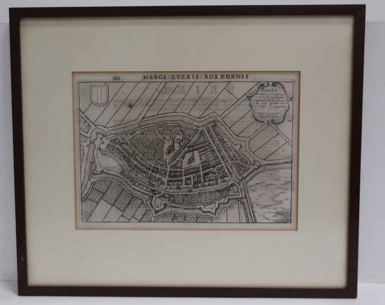 Prent, kopergravure, met kaart van Delfland en Schieland. Linksonder opschrift met titel kaart. Wanneer prent een kwartslag wordt gedraaid geeft het zicht op de kaart van Zuid-Holland. Te zien zijn o.a. het Westland, IJsselmonde, Voorne Putten en Goeree Overflakkee. De randen van de gebieden zijn geaccentueerd met de kleuren rood en geel.