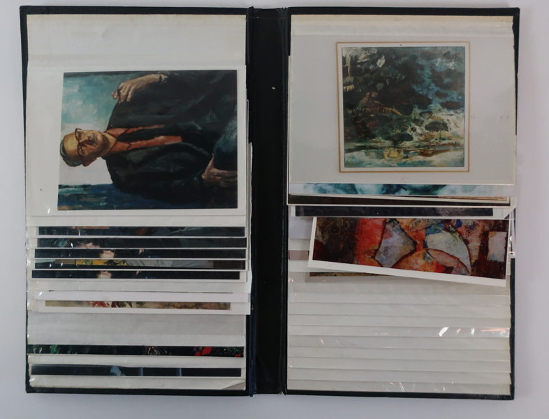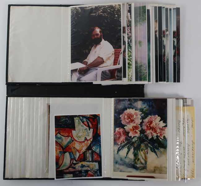 Fotoalbum, smal lang en zwart met opschrift 'photo'. In het fotoalbum zitten foto's van schilderijen die kunstenaar Piet Middelhoek (1930-2004) heeft vervaardigd. Daarnaast zitten er foto's in van Piet Middelhoek die gemaakt zijn tijdens exposities.
