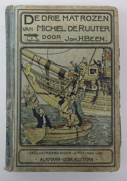 Boek zijnde een jeugdboek getiteld: 'De drie matrozen van michiel de Ruijter.'Op de voorkaft een afbeelding van het voorste gedeelte van een schip waarop enkele matrozen. Voor het schip drie personen in een roeiboot. Op pagina 317 een inhoudsopgave. In het boek diverse illustraties gemaakt door J.H. Isings. Derde druk.