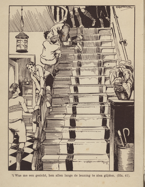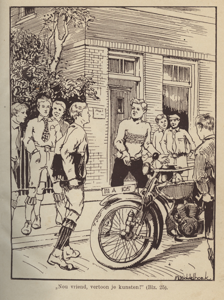 Boek zijnde een jeugdboek getiteld: 'Toch een Hollandsche jongen!'. Op de voorkaft een afbeelding van een jongen met rechts van hem een hond. Tegenover de jongen staat een man met hoed en een schep in zijn rechterhand. Op de achtergrond gezicht op een groot huis. Op pagina 168 een inhoudsopgave. In het boek zitten diverse ...