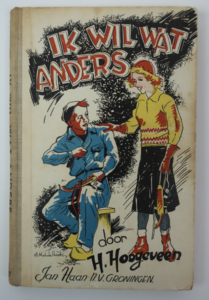 Boek zijnde een jeugdboek getiteld: 'Ik wil wat anders. Op de voorkaft een jonge man in blauwe overal of uniform zitten op een geel bankje. Hij houdt een schaats vast in zijn hand. Naast de jonge man staat een jonge vrouw. Zij houdt ook een schaats vast in haar hand. In het boek diverse afbeeldingen ...