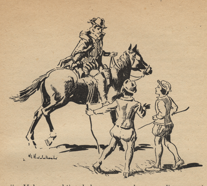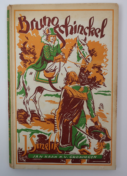 Boek zijnde een jeugdboek getiteld: 'Bruno Schinkel'. Titel op titelblad: 'Bruno Schinckel de zoon van de Delftse martelaar'. Op de voorkaft een afbeelding van een man in een groen uniform zittend op een wit paard. Voor hem eveneens een man in groen uniform. De achtergrond van de voorkaft in de kleuren geel,wit en rood. In ...