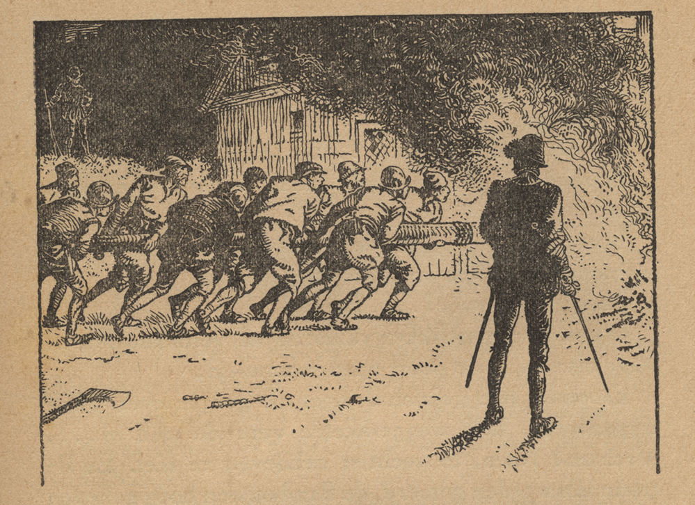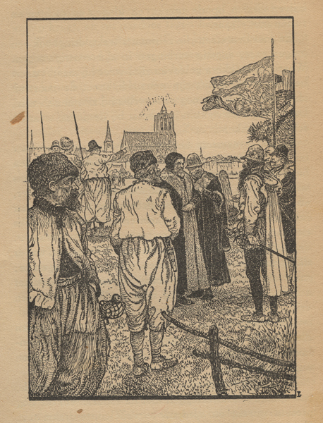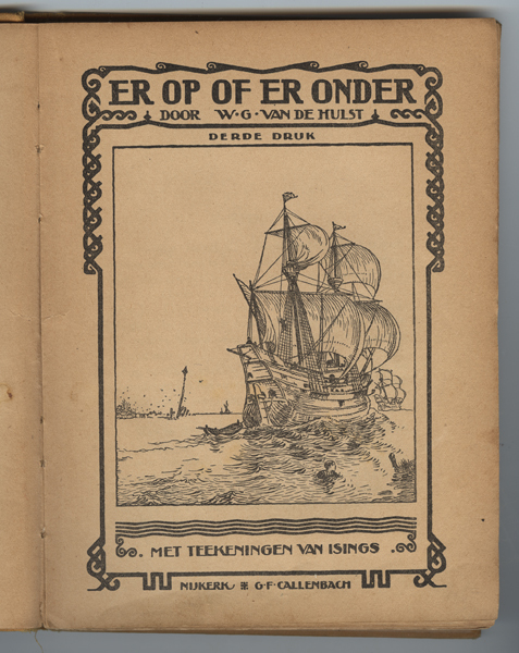 Boek zijnde een jeugdboek getiteld: 'Er op of er onder' over de inname van Den Briel. Op de voorkaft een afbeelding van een groep geuzen met wapens in hun hand. Op de achtergrond de Sint-Catharijnekerk van Brielle. In het boek diverse afbeeldingen die geïllustreerd zijn door J.H. Isings.