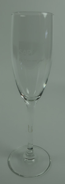 Wijnglas, zijnde een flûte, met opschrift 'SAP /Op 't nieuwe jaar!'.