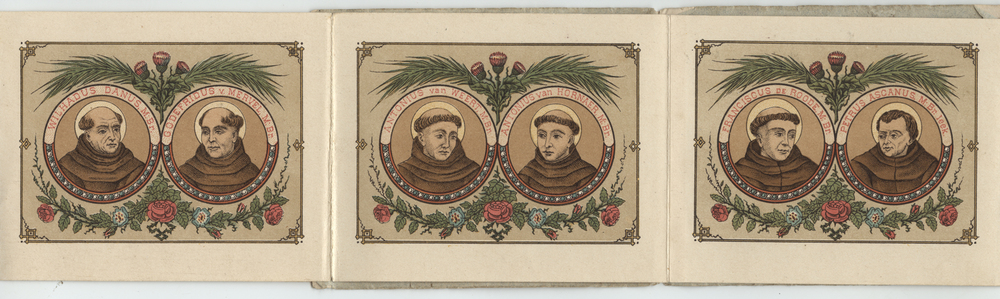 Album in de vorm van een klein boekje getiteld: 'Album van de H.H. Martelaars van Gorcum, terdood gebracht te Brielle, den 9. juli 1572'. Boekje is uitklapbaar met daarop negentien portretten van de martelaren van Gorcum. Op de achterkant twee afbeeldingen van de houten kapel waar nu de huidige Bedevaartskerk staat.