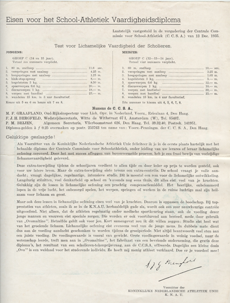 Atletiekdiploma van Pieter de Hullu (1926-1992) 1941