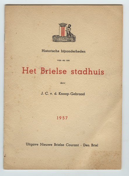 Gids getiteld: Historische bijzonderheden van en om Het Brielse stadhuis. Verkleurde crèmekleurige kaft met op voorkaft bovenaan het wapen van Brielle. Inhoud: Voorwoord, Geschiedenis van het gebouw, Het Brielse stadhuis als bolwerk, Brandschade aan het stadhuis, Eerste verplichte huwelijksvoltrekking in het stadhuis, De witte steentjes op het Marktplein, Hoge bezoekers in het stadhuis, Al is ...