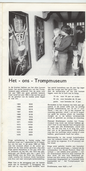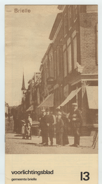 Gids getiteld: Voorlichtingsblad 13. Op binnenkaft belangrijke telefoonummers. Inhoud: Voorwoord door burgemeester C.J. de Ronde, 'n praatje bij 'b plaatje (naar foto Voorstraat vanaf de Markt uit 1915), Het-ons-Trompmuseum, 'Stichting Culturele Raad Den Briel', Zwemmen te Brielle, Stichting Geuzenstad, Bijstandsnormen, Indikatie-kommissie, Aanlegvergunningen, Bestemmingsplan Kleine Goote, Een honderdjarige, Verlangens, Centrale Commissie Inspraak, Opgevangen, Verbetering van particuliere ...