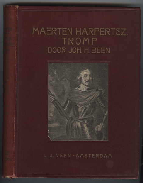 Boek, getiteld: 'Maerten Harpertsz. Tromp een zeemanszoon uit de 17de eeuw, door Joh. H. Been. Boek met rode kaft, goudkleurige letter op voorkaft en een zwart/wit afbeelding van Maarten H. Tromp. Opschrift op rug. Inhoud boek: I. De kleine Delftsche vluchteling, II De jeugd van Maerten Harpertsz. Tromp, III Onder de zeeroovers, IV Allerlei plannen, ...