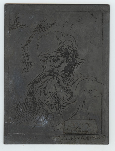 Etsplaat van een man met lange baard