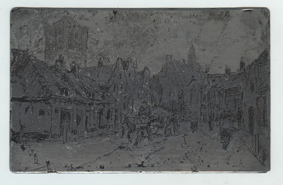 Etsplaat met zicht op de Langestraat