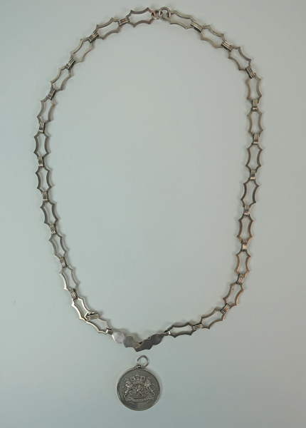Ambtsketen Oostvoorne, zilver, bestaat uit 24 schakels. De schakels bestaan uit acht afgeronde punten. Op de voorzijde van de penning het wapen van Oostvoorne en op de achterzijde het Rijkswapen.