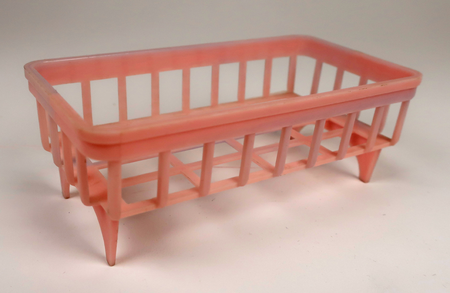 Bed, zijnde roze opengewerkte ledikant uit poppenhuis.