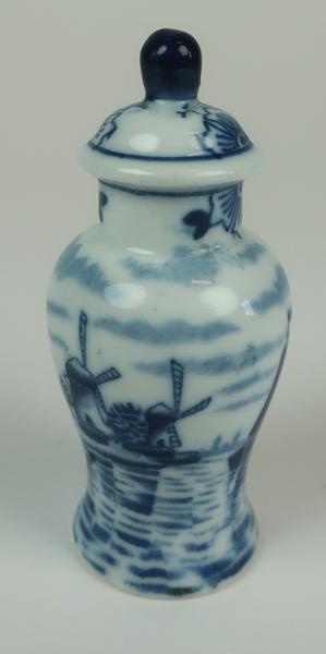 Vaas, Delfts blauw decor, met vaste deksel uit poppenhuis.