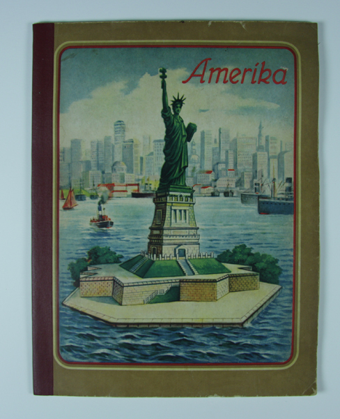 Reisgids of reisverslag getiteld: Amerika. De volgende steden/gebieden worden beschreven; New York, Washington, Chicago, New Orleans, Yellowstone Park, Grand Canyon, Californië, Florida etc. In de gids geplakte kaartjes met gekleurde plaatjes van de bezienswaardigheden van bovengenoemde gebieden. Op de voorkaft een polychrome voorstelling van het vrijheidbeeld in Manhattan. Op de achterkaft een kaart van bovengenoemd ...