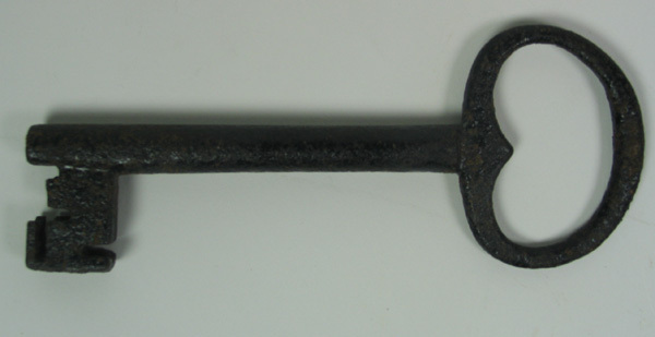 IJzeren sleutel met ovaalvormige greep en bewerkte baard.
