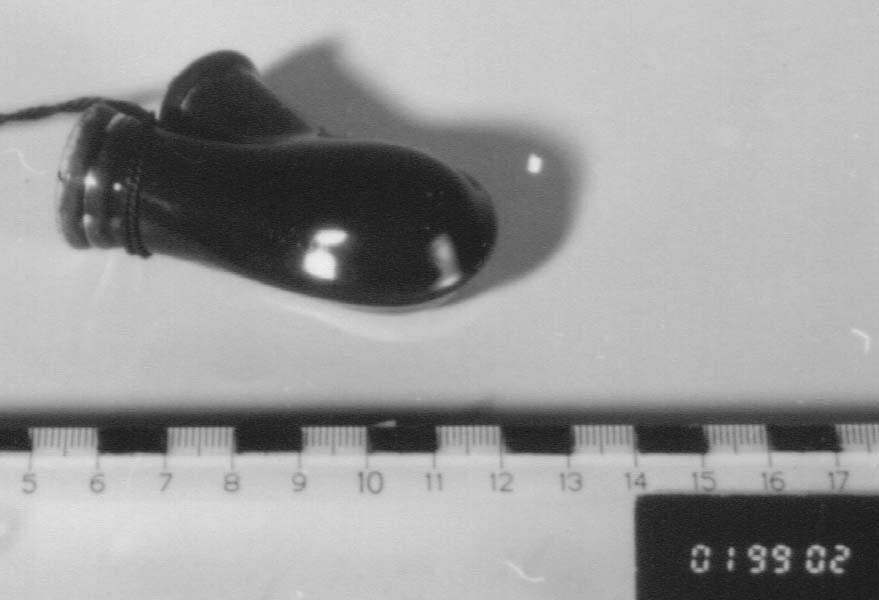 Pijptussenstuk, groen en goud beschilderd met kurk aan binnenzijde.