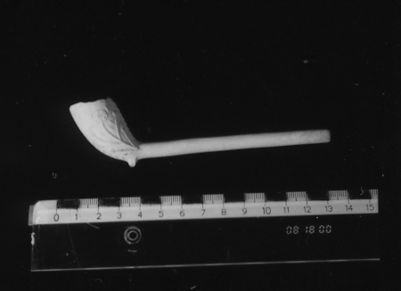 Pijp met bloemen in reliëf.