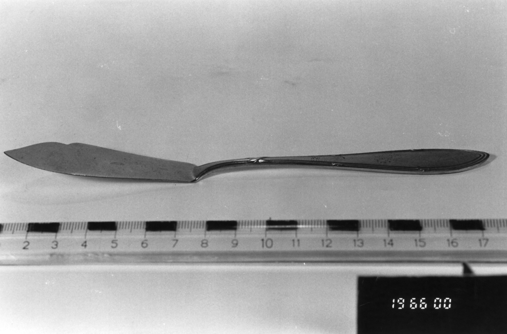 Vismes(?) met kruisbandmotief op steel, verzilverd(?).